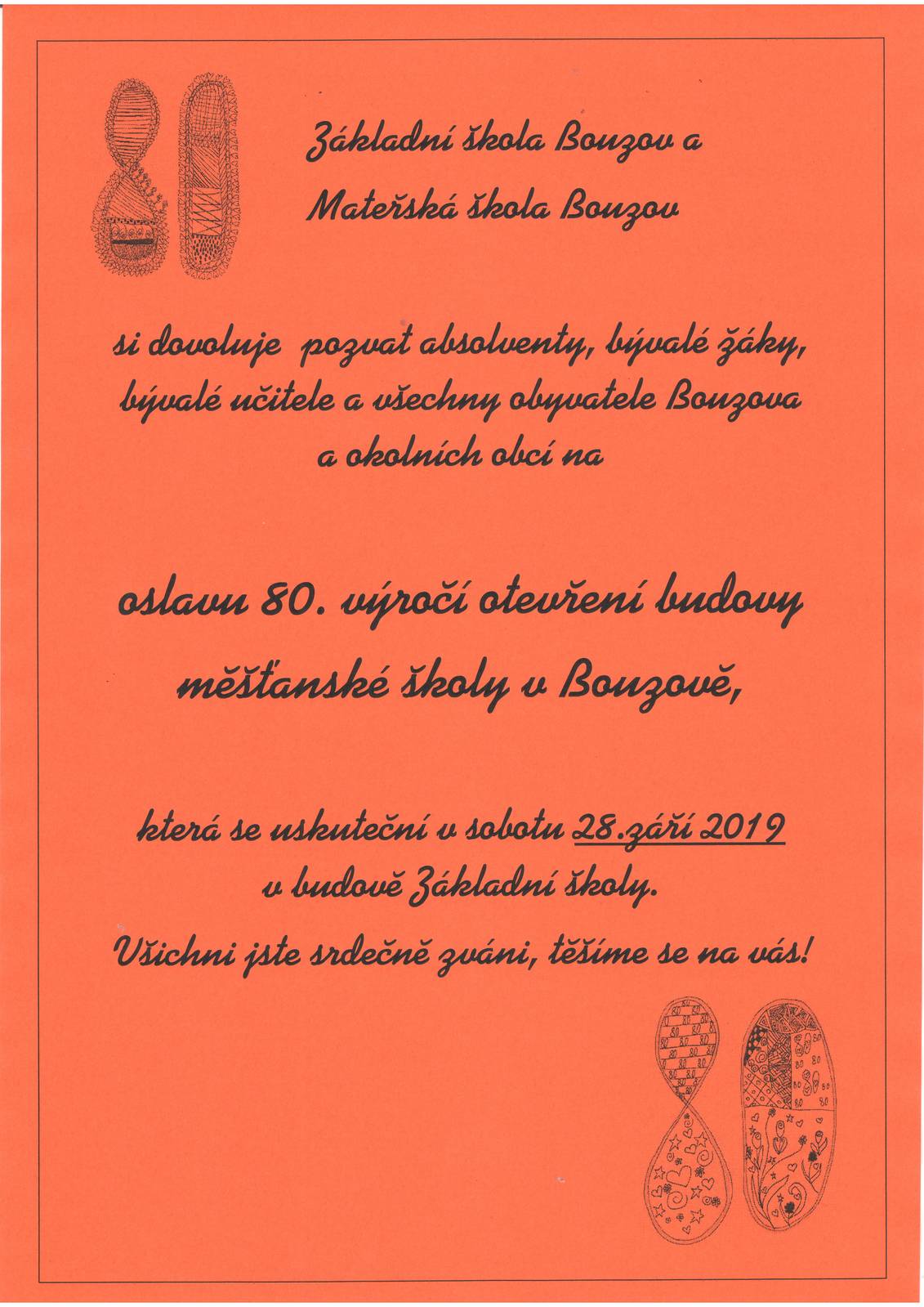 80.výročí otevření budovy měšťanské školy v Bouzově