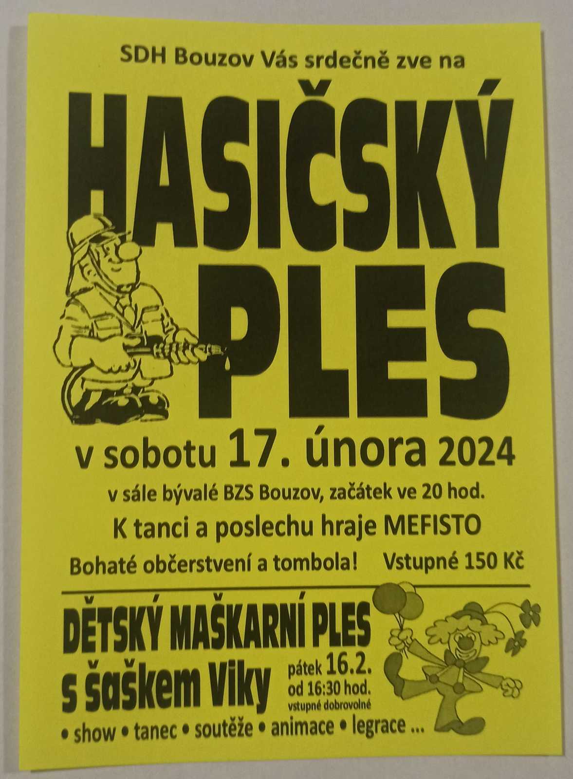 Dětský maškarní ples a hasičský ples Bouzov