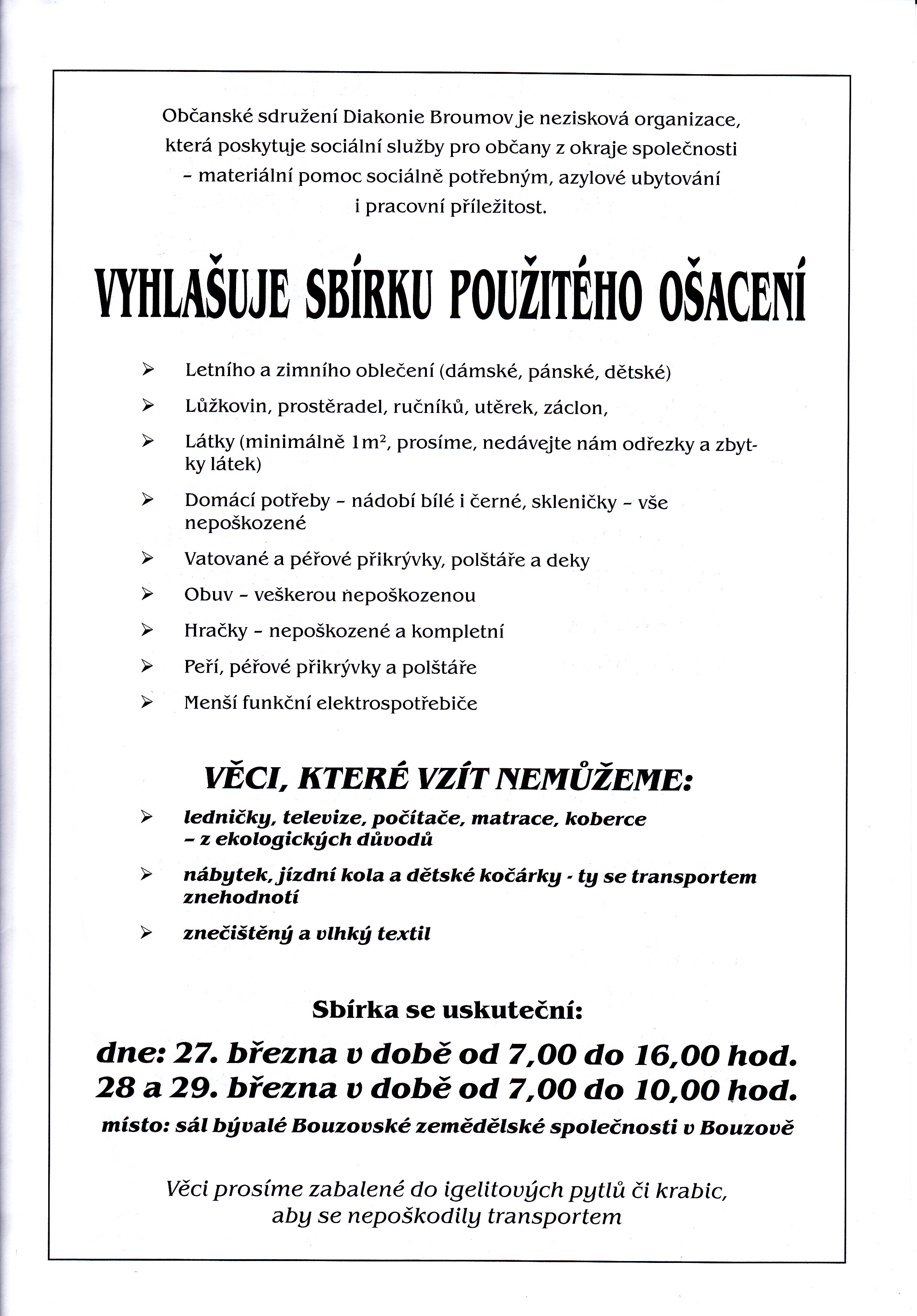 Úvod > Život v obci > Aktuality > Sbírka použitého ošacení