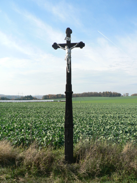 37. Hvozdečko u silnice do Olešnic (GPS: 49°41'28.694"N, 16°55'54.642"E); dřevěný kříž; původní kříž byl opraven a upevněn na konzolu v roce 1998; je to poslední lidová řezbářská památka u nás, dali jej postavit František a Barbora Helekalovi v roce 1874 a majitel gruntu Kleinů, nyní pana Holuba (č.p.7, bývalý Pivcův dvůr – panský dvůr o 150 měřicích). |