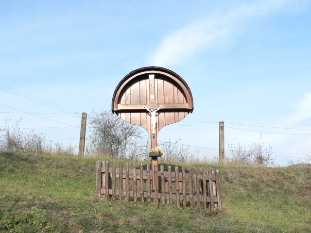 12. Kadeřín u cesty k domu rodiny Holušů č.p. 5 (GPS: 49°40'8.407"N, 16°53'25.805"E); dřevěný kříž umístěn na sloupku v kapličce na památku lesníka Vladimíra Holušu, který zde zemřel. Zbudován rodinou v roce 2008.
