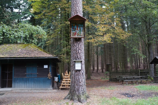 23. Podolí, v lese „U Huberta“ (GPS: 49°43'5.805"N, 16°54'51.412"E); obrázek sv. Huberta umístěn na stromě na památku revírníka Filipa, zastřeleného pytláky. „Původně se tomuto místu říkalo „U křižního dubu“. Roku 1887 se spolek sv. Huberta, který se zde často scházel, rozhodl o přejmenování na „U sv. Huberta“. Obraz zde nechal na vlastní náklady namalovat revírník Vlk z Obectova. V roce 1955 zde bylo umístěno sousoší sv. Huberta s jelenem, pocházející ze žadlovické hájenky, kde v té době působil revírník Havlíček. Sousoší bylo později přemístěno do loštického muzea A. Kašpara, kde se nachází dodnes. Současný reliéf pochází od loštického občana p. M. Pyšného a byl zde umístěn 8. 11. 2003.“