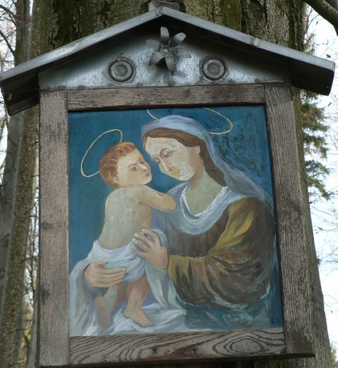 16. Blažov u chodníku do Bouzova „Na Jamě“ (GPS: 49°41'18.999"N, 16°52'56.223"E); obrázek P. Marie s Ježíškem umístěn na stromě; původní v dobrém stavu; Traduje se, že sem byl obrázek umístěn na památku, kdy se zde zachránil muzikant, který poblíž spadlo do jámy na chytání dravé zvěře, kde byl chycen vlk. Muzikant troubil na trubku až do rána, aby ho vlk neroztrhal, až jej ráno zachránili lidé z Blažova.