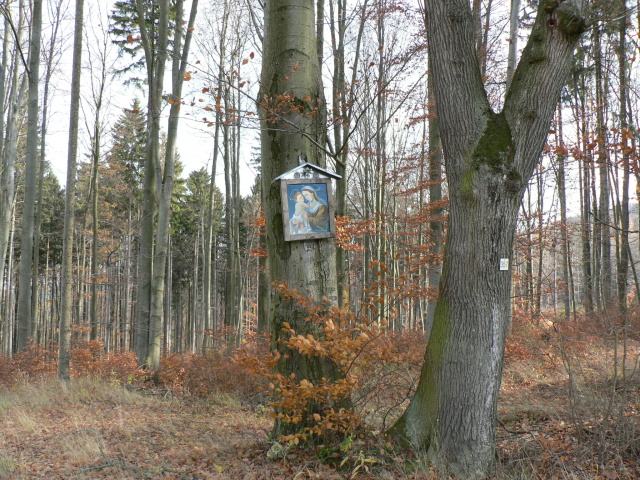 14. Kadeřín u silnice do Blažova pod křížem (GPS: 49°40'23.852"N, 16°53'27.913"E); obrázek P. Ježíše umístěn na stromě; nově obnoven v roce 2007.