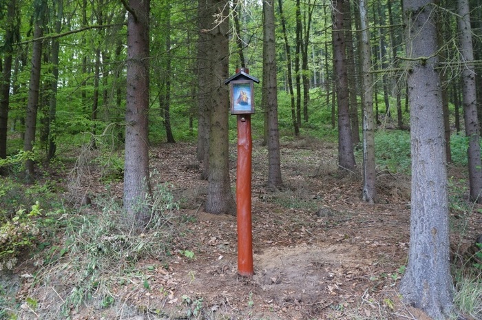 15. Kadeřín; za první chatou (chata pana Fišmistra) u cesty vpravo od silnice do Kadeřína (GPS: 49°40'26.694"N, 16°53'22.104"E); obrázek Panny Marie umístěn na sloupku; nově obnoven v roce 2014.